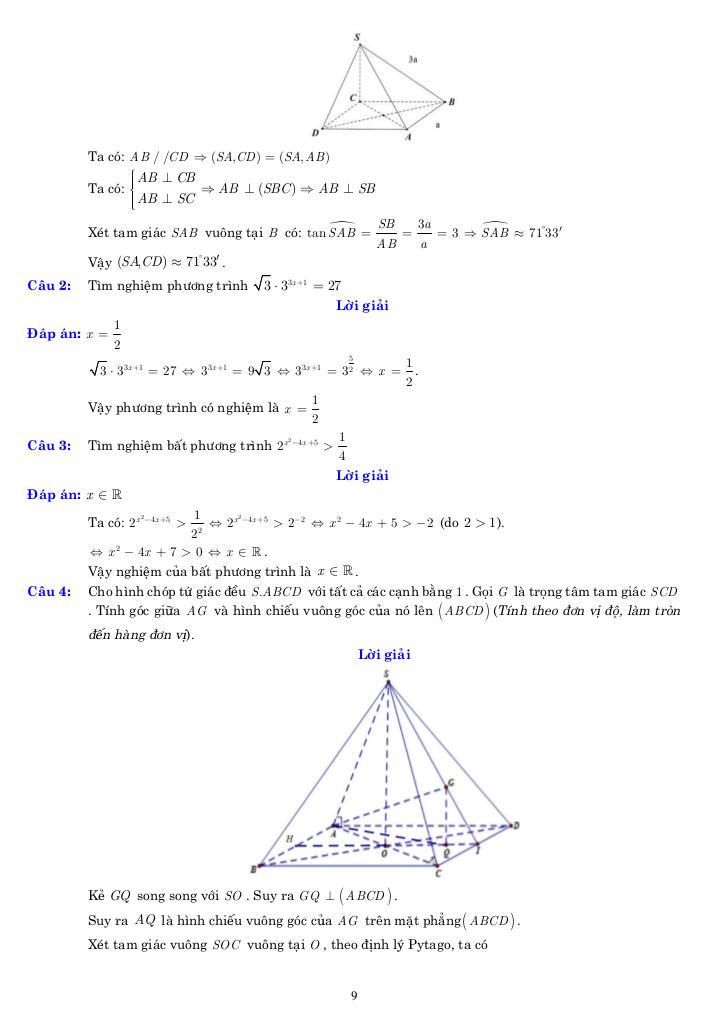 - Trình bày lời giải rõ ràng và khoa học.