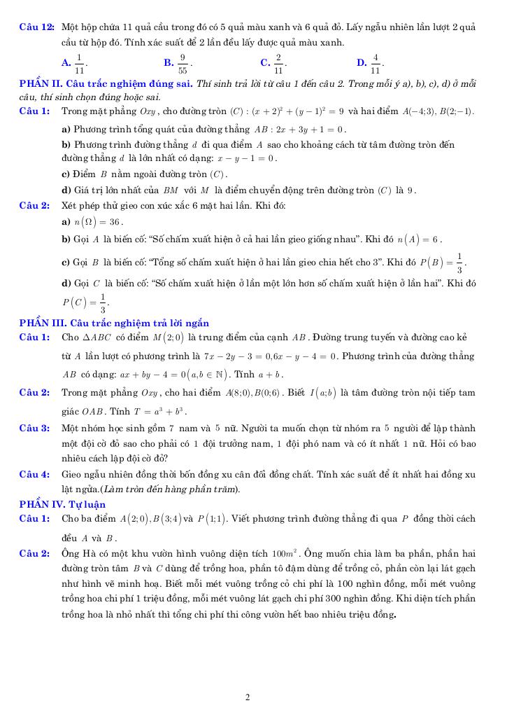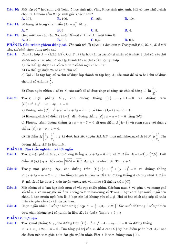 Toán học luôn là một môn học quan trọng, giúp học sinh phát triển tư duy logic và kỹ năng giải quyết vấn đề. Để hỗ trợ các bạn học sinh và giáo viên trong việc học tập và giảng dạy, bài viết này sẽ cung cấp lời giải chi tiết và đáp án chính xác cho chủ đề 10 đề ôn tập cuối học kỳ 2 toán 10 năm 2025 – 2026 cấu trúc 3-2-2-3, giúp bạn hiểu sâu và tự tin hơn khi làm bài tập.