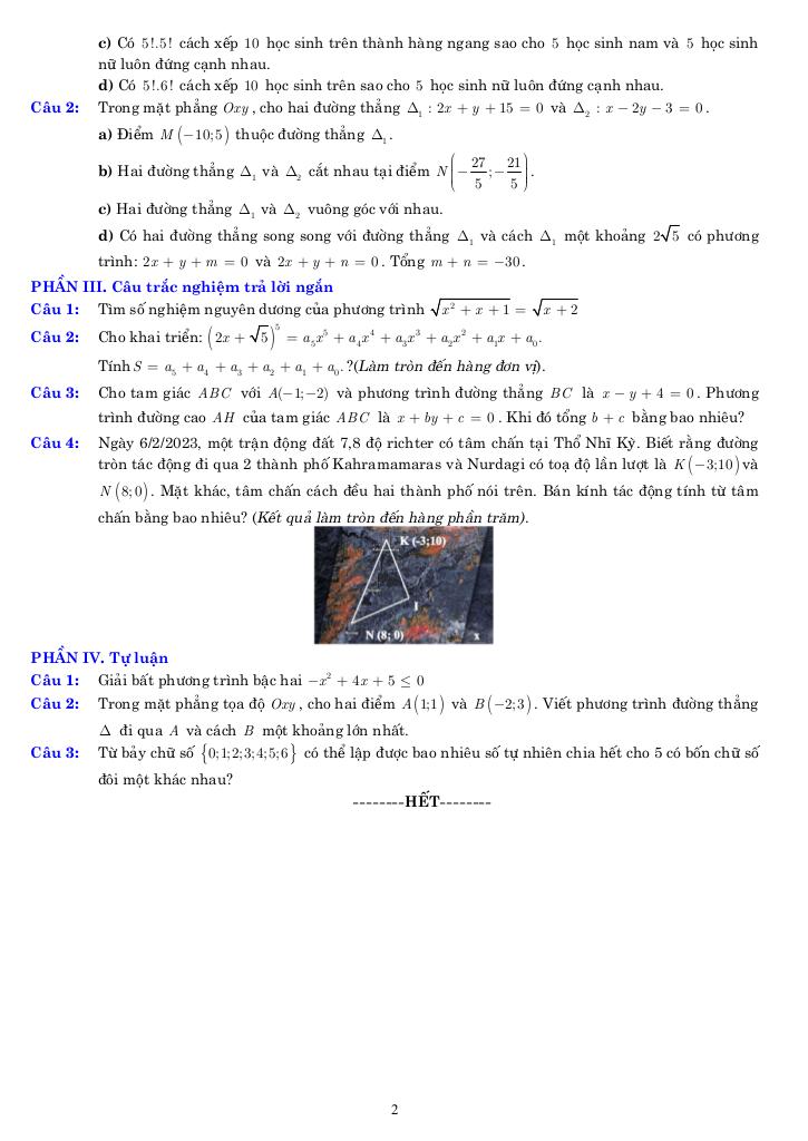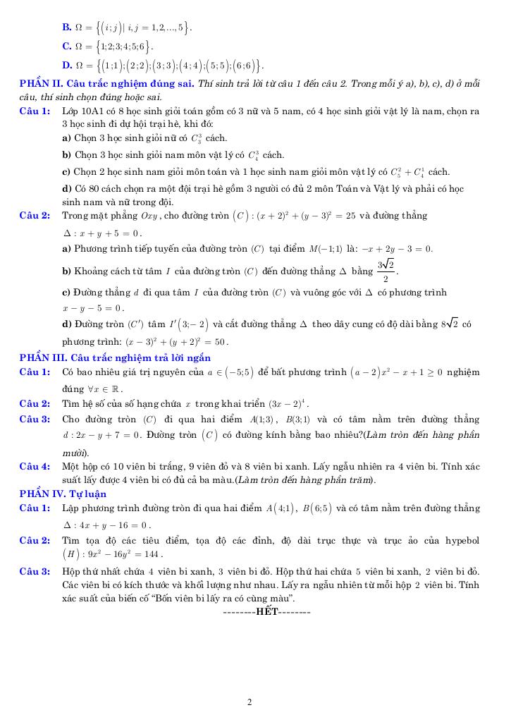 Giải Toán 10 đề ôn tập cuối học kỳ 2 toán 10 năm 2025 – 2026 cấu trúc 3-2-2-3 với Đáp Án Mới Nhất