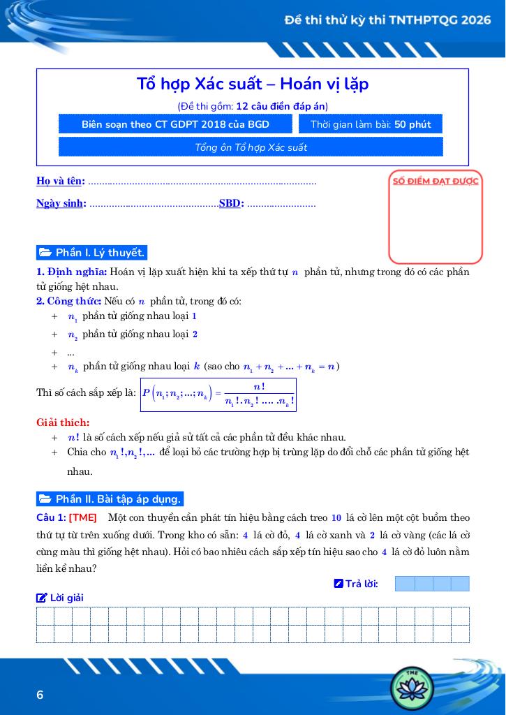 BUỔI SỐ 02: HOÁN VỊ LẶP (Trang 6).