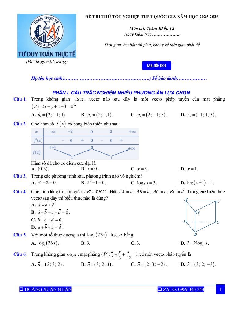 >> Xem thêm đáp án chi tiết về: 20 đề thi thử tốt nghiệp thpt quốc gia năm 2026 môn toán – hoàng xuân nhàn.