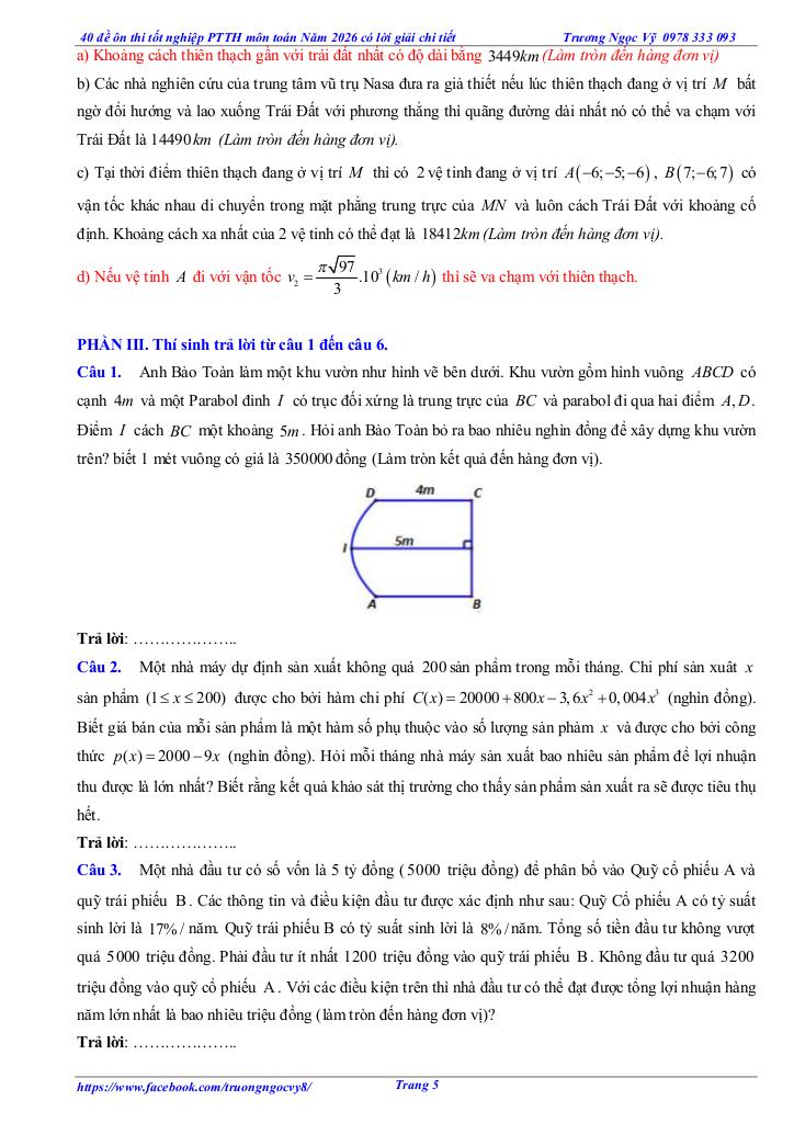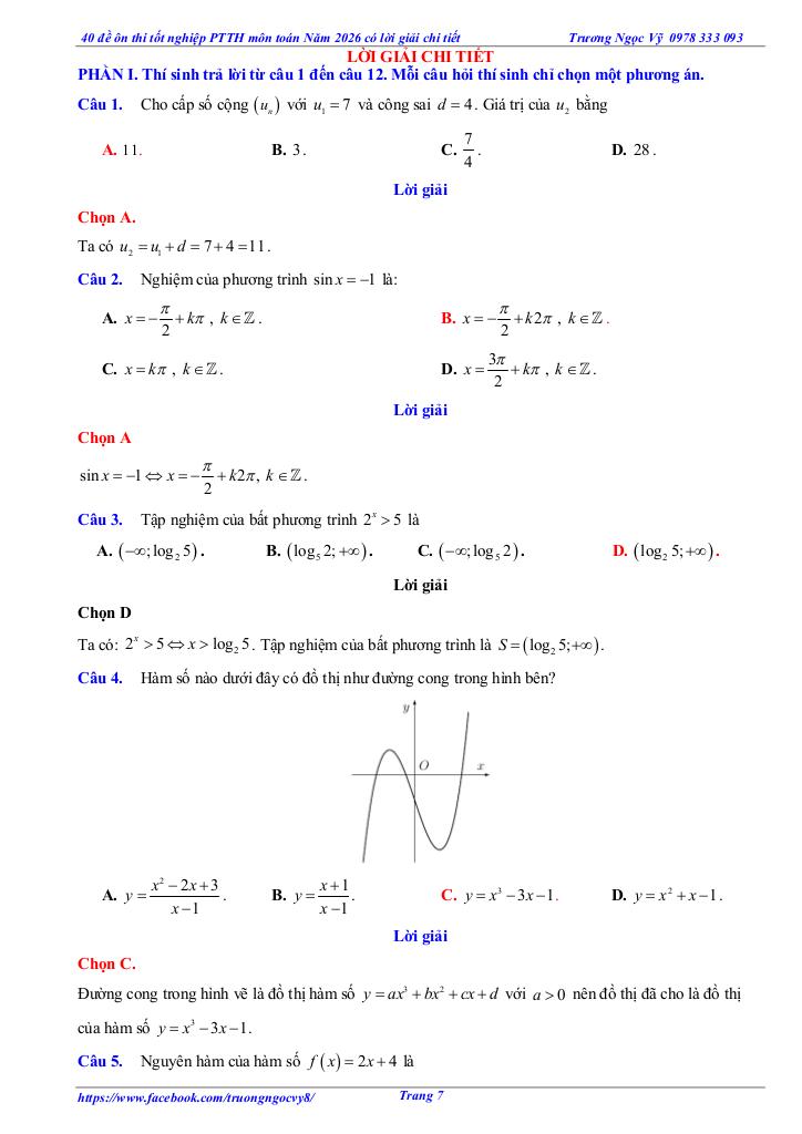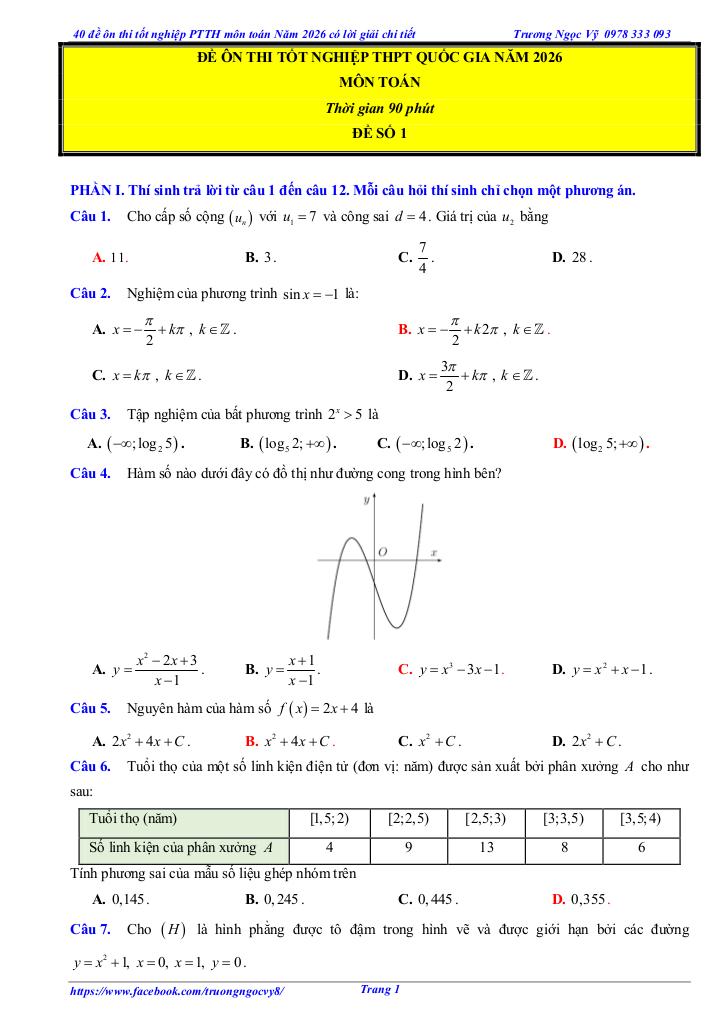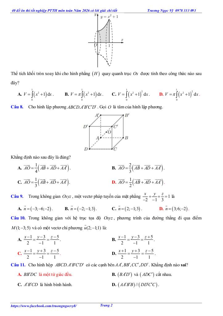 Xem thêm đáp án: 40 đề ôn thi tốt nghiệp thpt 2026 môn toán có lời giải chi tiết – trương ngọc vỹ