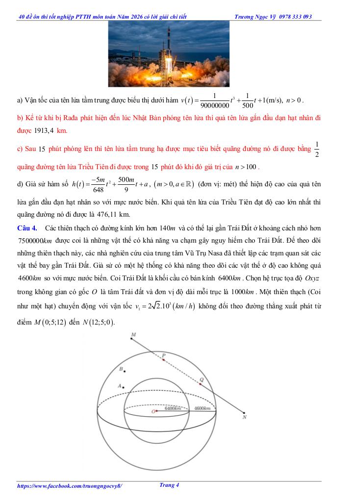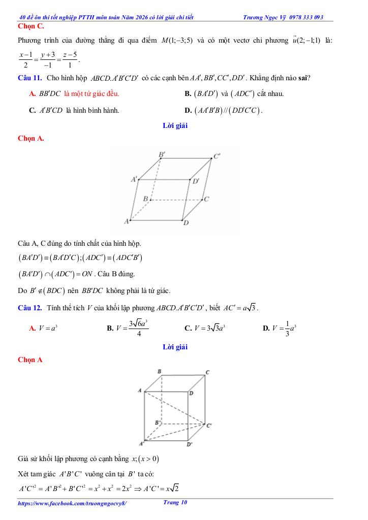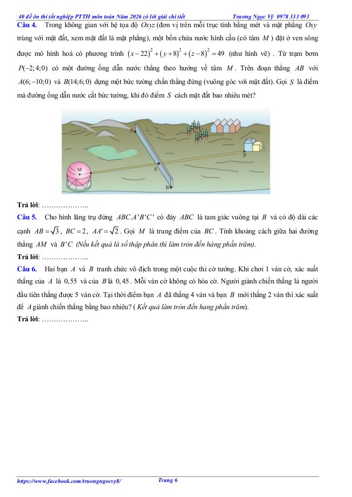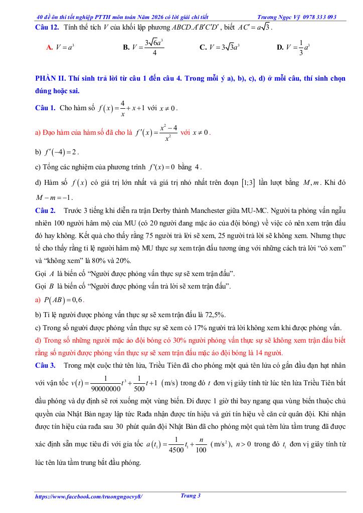 Giải Toán 40 đề ôn thi tốt nghiệp thpt 2026 môn toán có lời giải chi tiết – trương ngọc vỹ với Đáp Án Mới Nhất