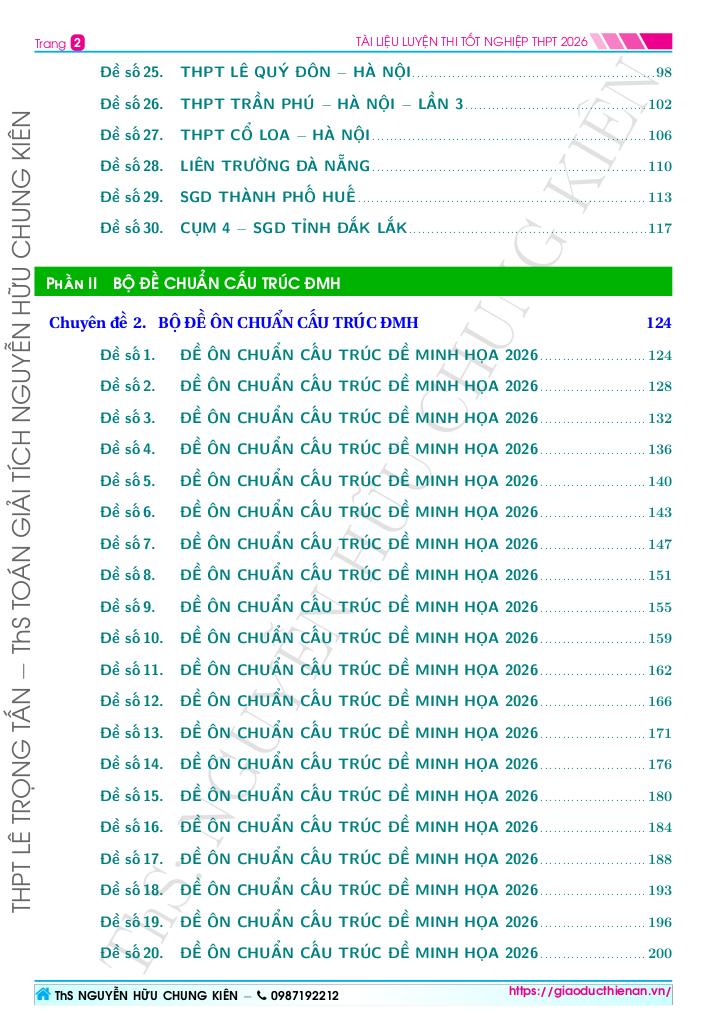 Đề số 25. THPT LÊ QUÝ ĐÔN – HÀ NỘI 98.