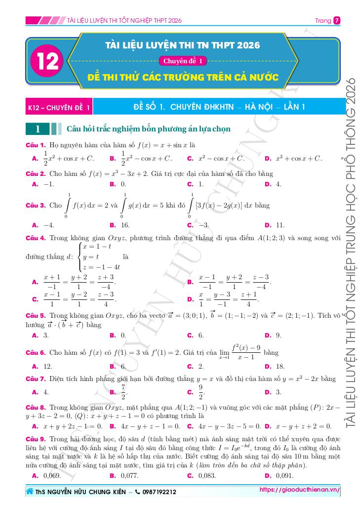 Toán học luôn là một môn học quan trọng, giúp học sinh phát triển tư duy logic và kỹ năng giải quyết vấn đề. Để hỗ trợ các bạn học sinh và giáo viên trong việc học tập và giảng dạy, bài viết này sẽ cung cấp lời giải chi tiết và đáp án chính xác cho chủ đề 80 đề ôn thi tốt nghiệp thpt năm 2026 môn toán – nguyễn hữu chung kiên, giúp bạn hiểu sâu và tự tin hơn khi làm bài tập.