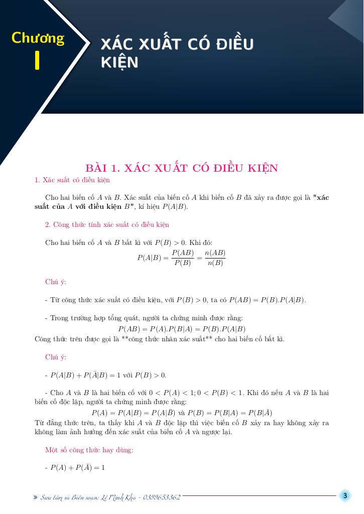 PHẦN I. XÁC XUẤT CÓ ĐIỀU KIỆN.