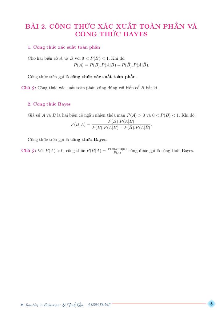 BÀI 2. CÔNG THỨC XÁC XUẤT TOÀN PHẦN VÀ CÔNG THỨC BAYES.