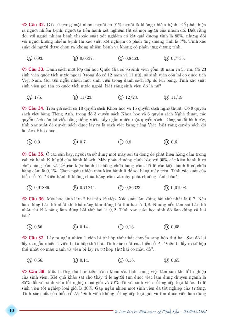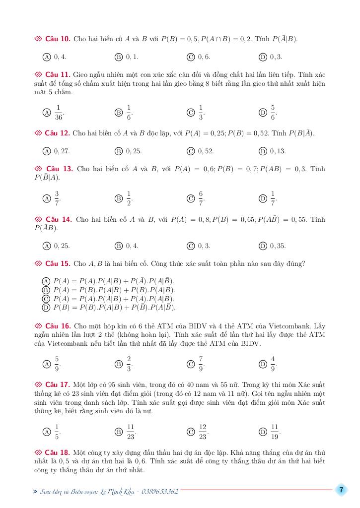 bài tập xác suất có điều kiện có đáp án và hướng dẫn giải – lê minh kha là một trong những phần kiến thức quan trọng trong chương trình toán học, thường xuất hiện trong các bài kiểm tra và kỳ thi lớn. Việc nắm vững phần này không chỉ giúp bạn đạt điểm cao mà còn tạo nền tảng vững chắc để học các nội dung nâng cao hơn.