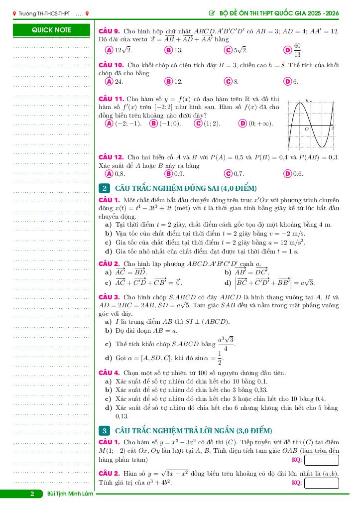 Toán học luôn là một môn học quan trọng, giúp học sinh phát triển tư duy logic và kỹ năng giải quyết vấn đề. Để hỗ trợ các bạn học sinh và giáo viên trong việc học tập và giảng dạy, bài viết này sẽ cung cấp lời giải chi tiết và đáp án chính xác cho chủ đề bộ 130 đề ôn thi thpt quốc gia môn toán năm học 2025 – 2026 có đáp án, giúp bạn hiểu sâu và tự tin hơn khi làm bài tập.
