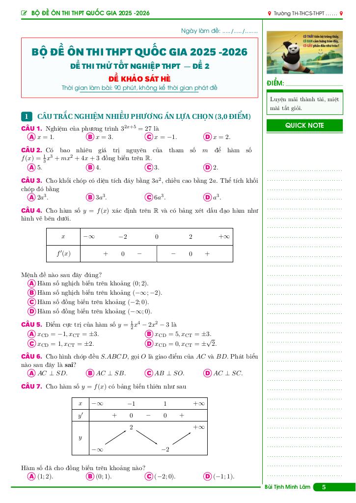 Đề 1-4: Đề thi thử tốt nghiệp THPT — Đề Khảo Sát Hè 1.