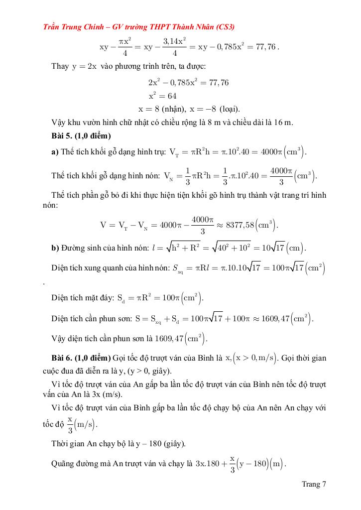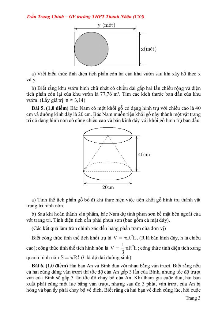 Bài 5. (1,0 điểm) Dạng toán thực tế liên quan đến hình học: