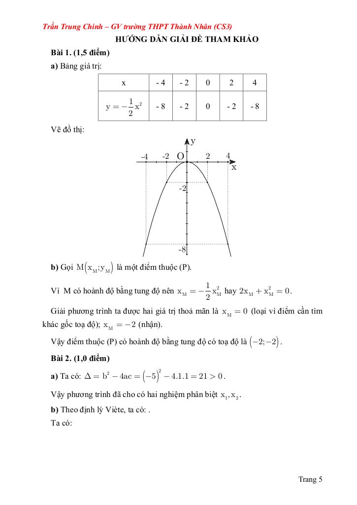 Bài 2. (1,0 điểm) Cho phương trình bậc hai y = ax2 + bx + c = 0 (a ≠ 0).