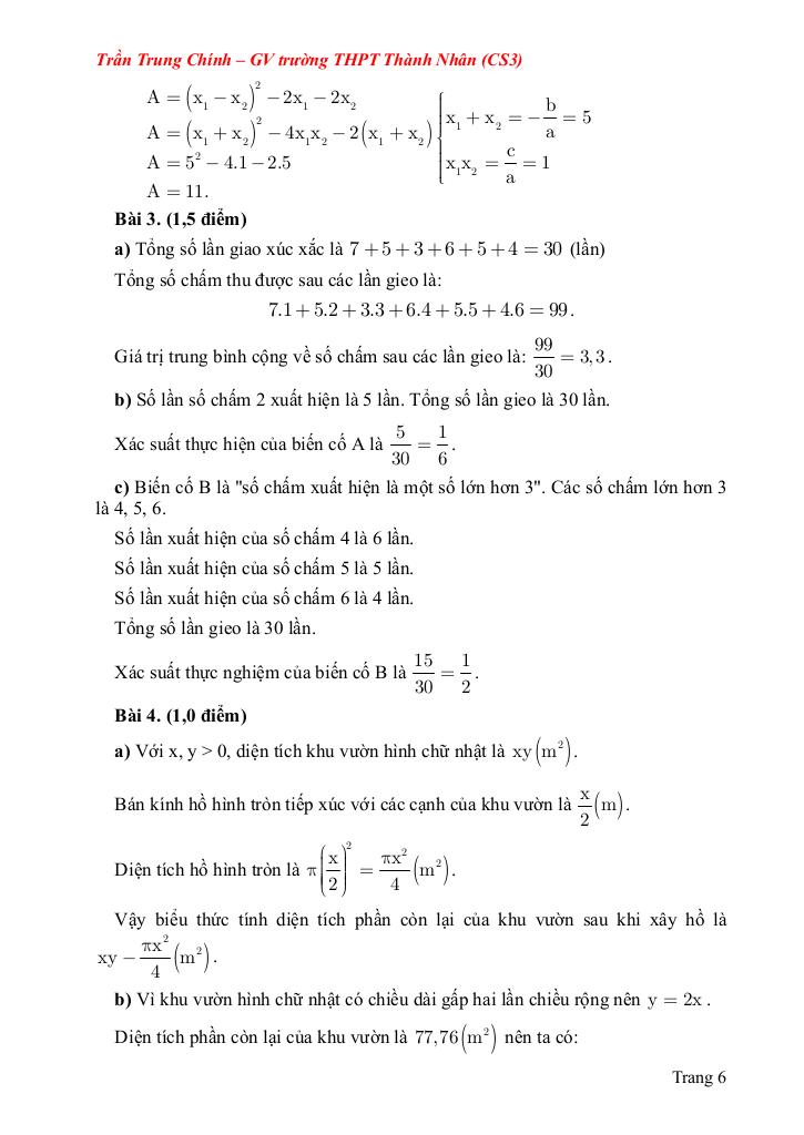 Bài 3. (1,5 điểm) Dạng toán thực tế liên quan đến xác suất, thống kê.