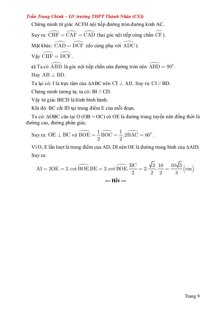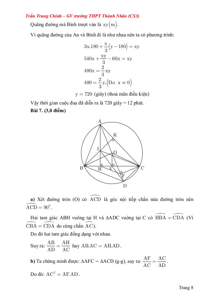 Bài 7. (3,0 điểm) Bài toán hình học phẳng gồm 3 câu.