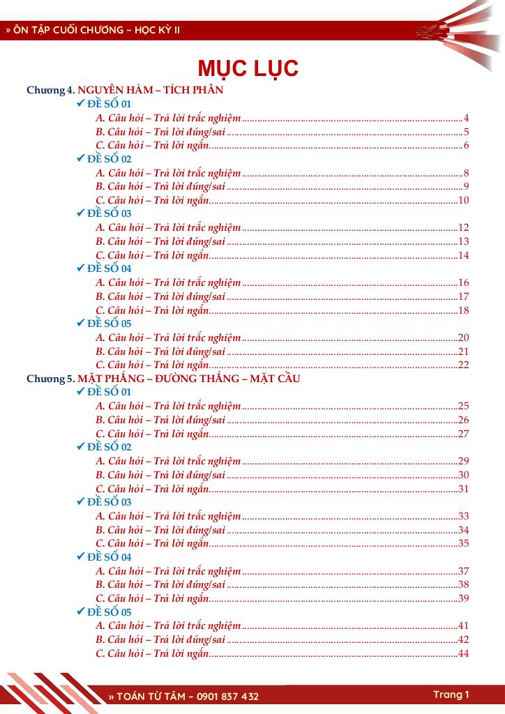 Toán học luôn là một môn học quan trọng, giúp học sinh phát triển tư duy logic và kỹ năng giải quyết vấn đề. Để hỗ trợ các bạn học sinh và giáo viên trong việc học tập và giảng dạy, bài viết này sẽ cung cấp lời giải chi tiết và đáp án chính xác cho chủ đề bộ đề đánh giá chất lượng cuối chương môn toán 12 học kỳ 2, giúp bạn hiểu sâu và tự tin hơn khi làm bài tập.