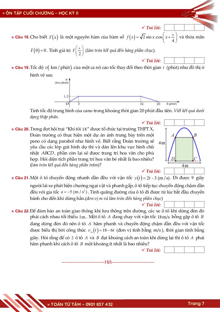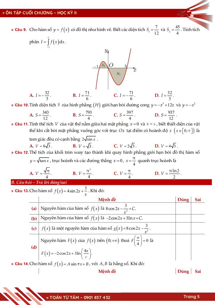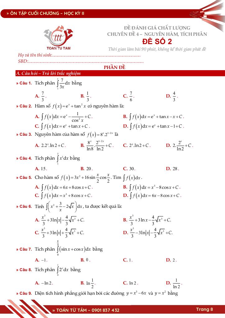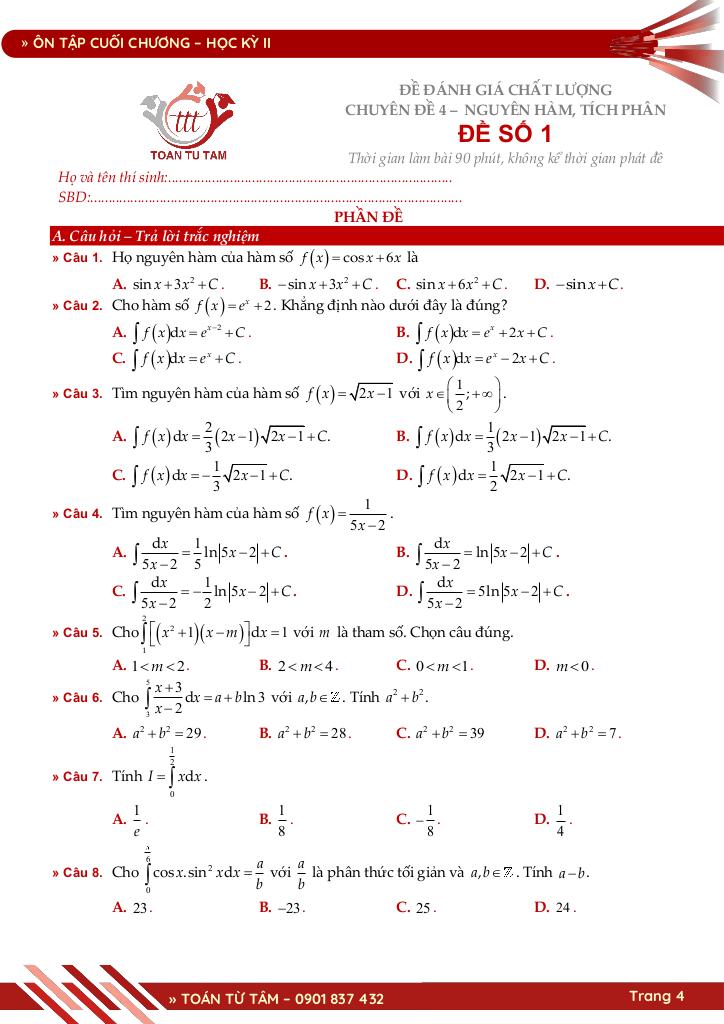 Chương 4. NGUYÊN HÀM – TÍCH PHÂN.