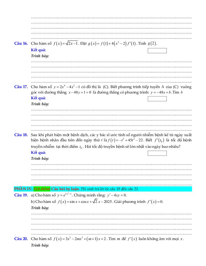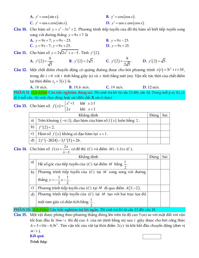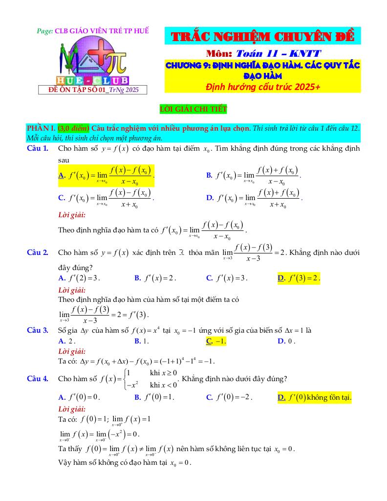 Toán học luôn là một môn học quan trọng, giúp học sinh phát triển tư duy logic và kỹ năng giải quyết vấn đề. Để hỗ trợ các bạn học sinh và giáo viên trong việc học tập và giảng dạy, bài viết này sẽ cung cấp lời giải chi tiết và đáp án chính xác cho chủ đề bộ đề ôn tập chuyên đề đạo hàm môn toán 11 – lê bá bảo, giúp bạn hiểu sâu và tự tin hơn khi làm bài tập.