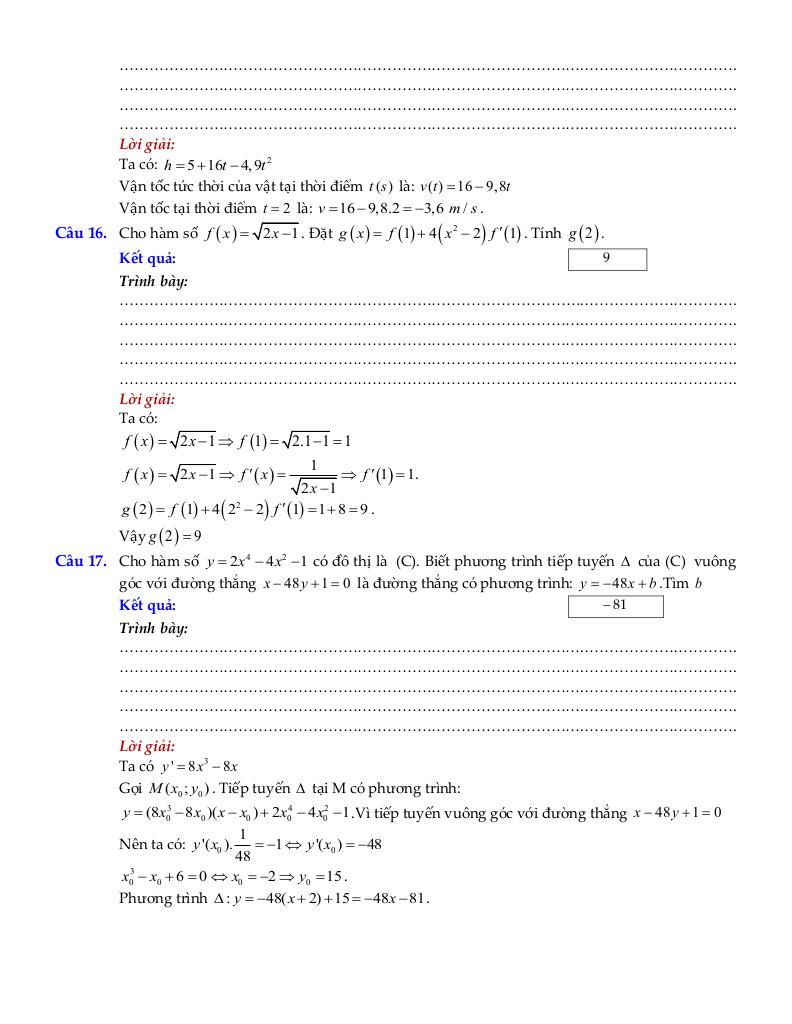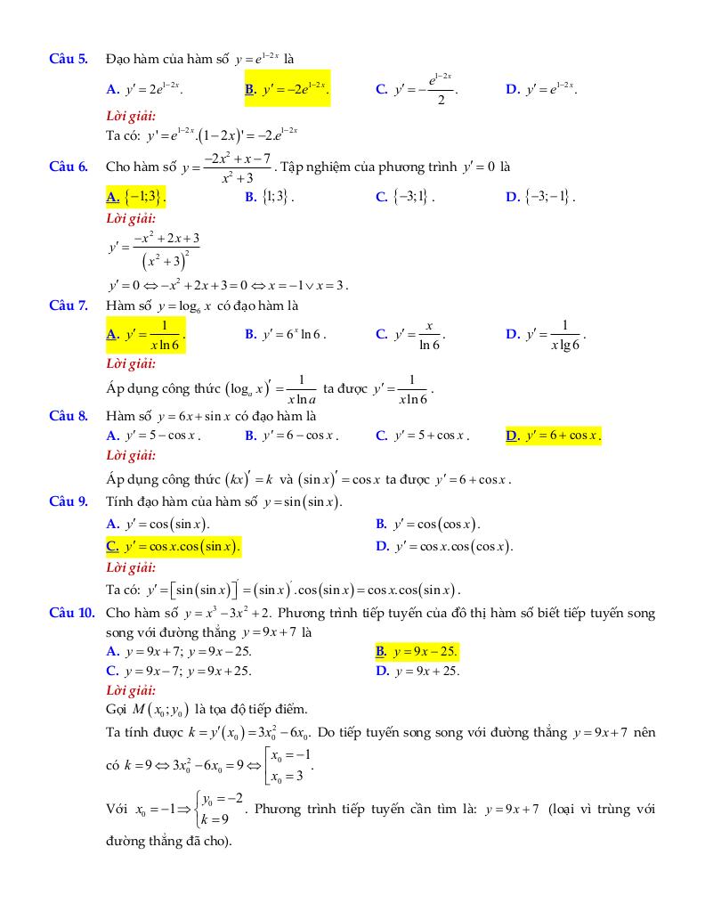 Giải Toán bộ đề ôn tập chuyên đề đạo hàm môn toán 11 – lê bá bảo với Đáp Án Mới Nhất