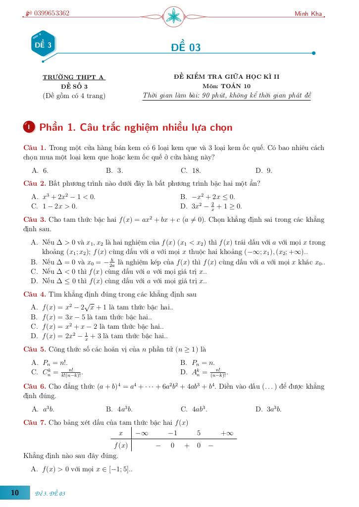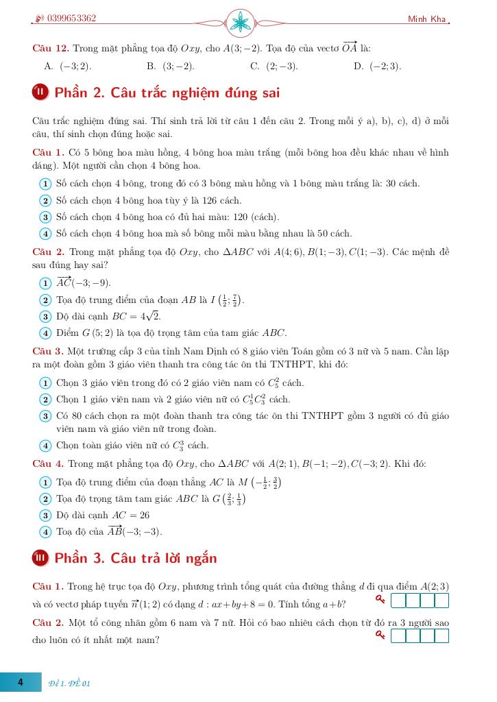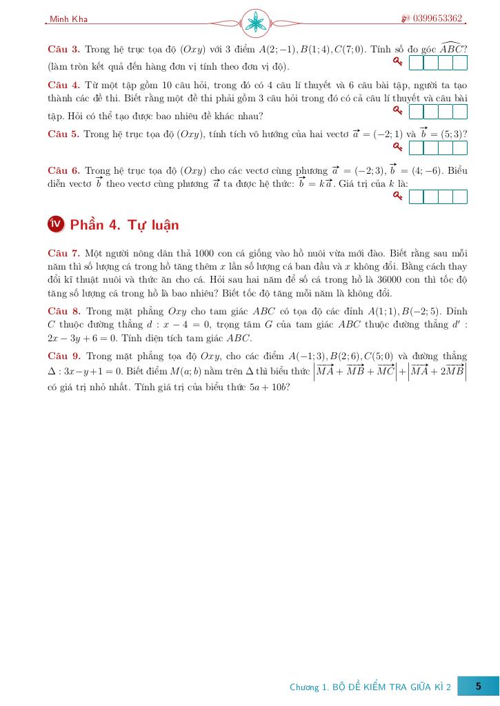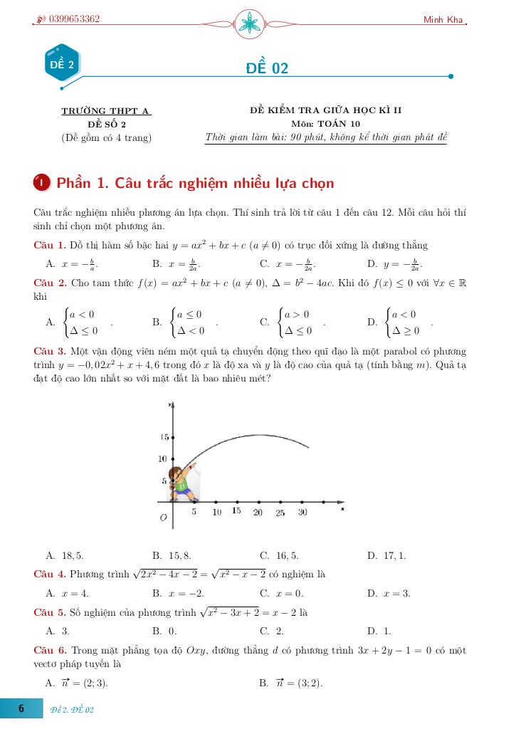 Toán học luôn là một môn học quan trọng, giúp học sinh phát triển tư duy logic và kỹ năng giải quyết vấn đề. Để hỗ trợ các bạn học sinh và giáo viên trong việc học tập và giảng dạy, bài viết này sẽ cung cấp lời giải chi tiết và đáp án chính xác cho chủ đề bộ đề ôn tập giữa học kì 2 môn toán 10 – lê minh kha, giúp bạn hiểu sâu và tự tin hơn khi làm bài tập.