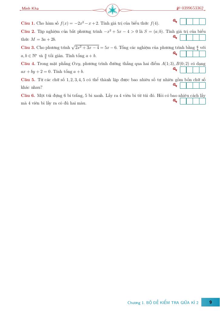 Giải Toán bộ đề ôn tập giữa học kì 2 môn toán 10 – lê minh kha với Đáp Án Mới Nhất