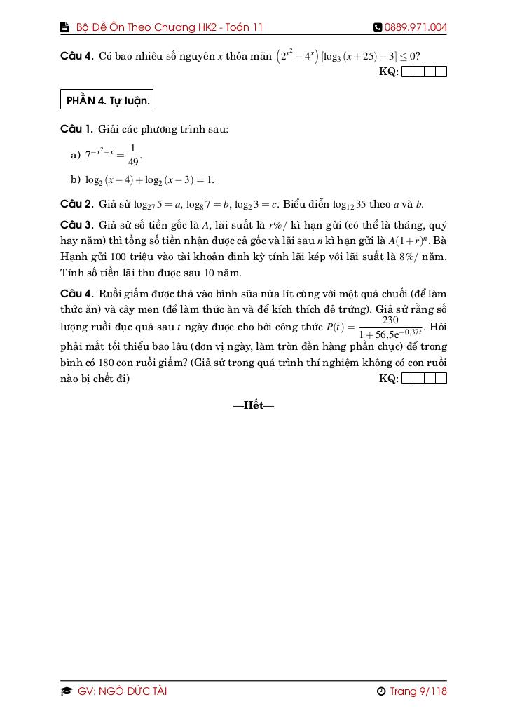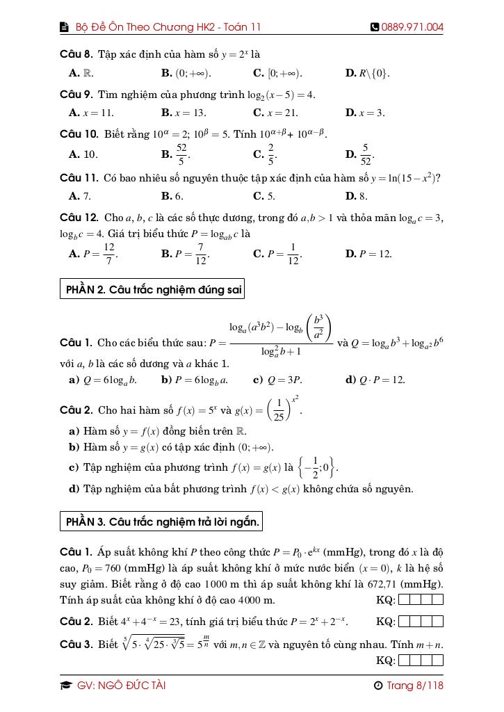 Toán học luôn là một môn học quan trọng, giúp học sinh phát triển tư duy logic và kỹ năng giải quyết vấn đề. Để hỗ trợ các bạn học sinh và giáo viên trong việc học tập và giảng dạy, bài viết này sẽ cung cấp lời giải chi tiết và đáp án chính xác cho chủ đề bộ đề ôn tập theo chương môn toán 11 học kì 2 – ngô đức tài, giúp bạn hiểu sâu và tự tin hơn khi làm bài tập.
