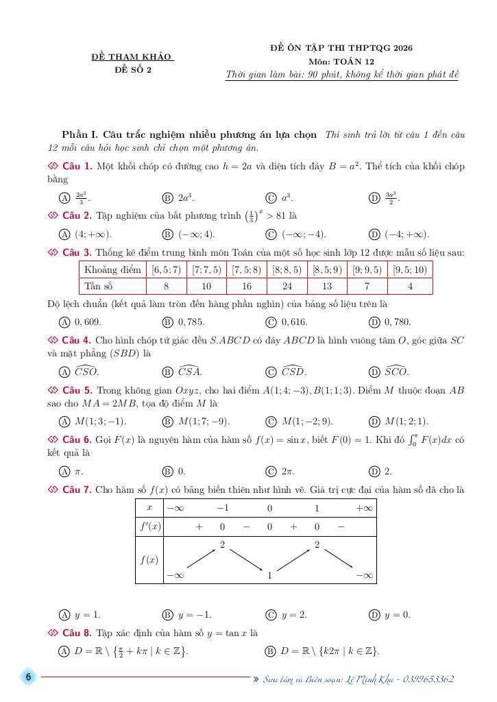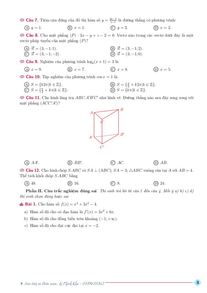 Toán học luôn là một môn học quan trọng, giúp học sinh phát triển tư duy logic và kỹ năng giải quyết vấn đề. Để hỗ trợ các bạn học sinh và giáo viên trong việc học tập và giảng dạy, bài viết này sẽ cung cấp lời giải chi tiết và đáp án chính xác cho chủ đề bộ đề ôn tập thi thpt quốc gia môn toán năm học 2025 – 2026 mục tiêu 5+, giúp bạn hiểu sâu và tự tin hơn khi làm bài tập.