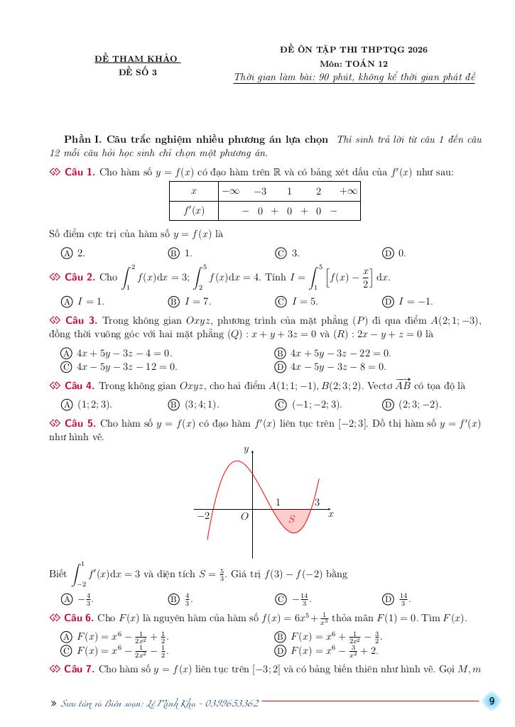 Tài liệu gồm 108 trang, được biên soạn bởi thầy giáo Lê Minh Kha, tuyển tập bộ đề ôn tập thi THPT Quốc gia môn Toán năm học 2025 – 2026 mục tiêu 5+. Các đề thi bám sát đề minh họa và đề chính thức kỳ thi tốt nghiệp THPT môn Toán năm 2025. Các dạng toán đa dạng giúp học sinh có kĩ năng tư duy và tăng kỹ năng phản xạ đề.