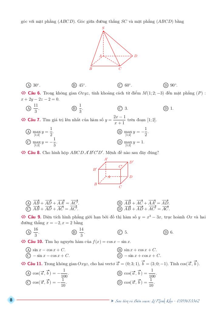 Giải Toán bộ đề ôn tập thi thpt quốc gia môn toán năm học 2025 – 2026 mục tiêu 9+ với Đáp Án Mới Nhất