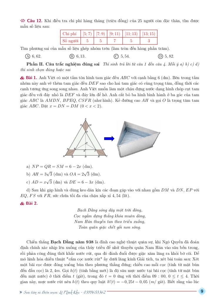 Tài liệu gồm 191 trang, được biên soạn bởi thầy giáo Lê Minh Kha, tuyển tập bộ đề ôn tập thi THPT Quốc gia môn Toán năm học 2025 – 2026 mục tiêu 9+. Các đề thi bám sát đề minh họa và đề chính thức kỳ thi tốt nghiệp THPT môn Toán năm 2025. Các dạng toán đa dạng giúp học sinh có kĩ năng tư duy và tăng kỹ năng phản xạ đề.