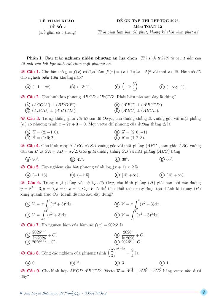 Toán học luôn là một môn học quan trọng, giúp học sinh phát triển tư duy logic và kỹ năng giải quyết vấn đề. Để hỗ trợ các bạn học sinh và giáo viên trong việc học tập và giảng dạy, bài viết này sẽ cung cấp lời giải chi tiết và đáp án chính xác cho chủ đề bộ đề ôn tập thpt quốc gia môn toán năm 2026 (phần 2) – lê minh kha, giúp bạn hiểu sâu và tự tin hơn khi làm bài tập.