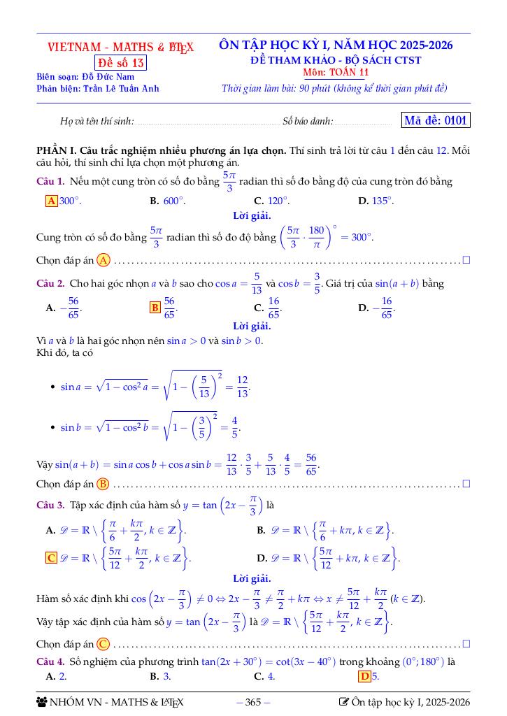 Toán học luôn là một môn học quan trọng, giúp học sinh phát triển tư duy logic và kỹ năng giải quyết vấn đề. Để hỗ trợ các bạn học sinh và giáo viên trong việc học tập và giảng dạy, bài viết này sẽ cung cấp lời giải chi tiết và đáp án chính xác cho chủ đề bộ đề tham khảo ôn tập học kỳ 1 toán 11 sách ctst năm học 2025 – 2026, giúp bạn hiểu sâu và tự tin hơn khi làm bài tập.
