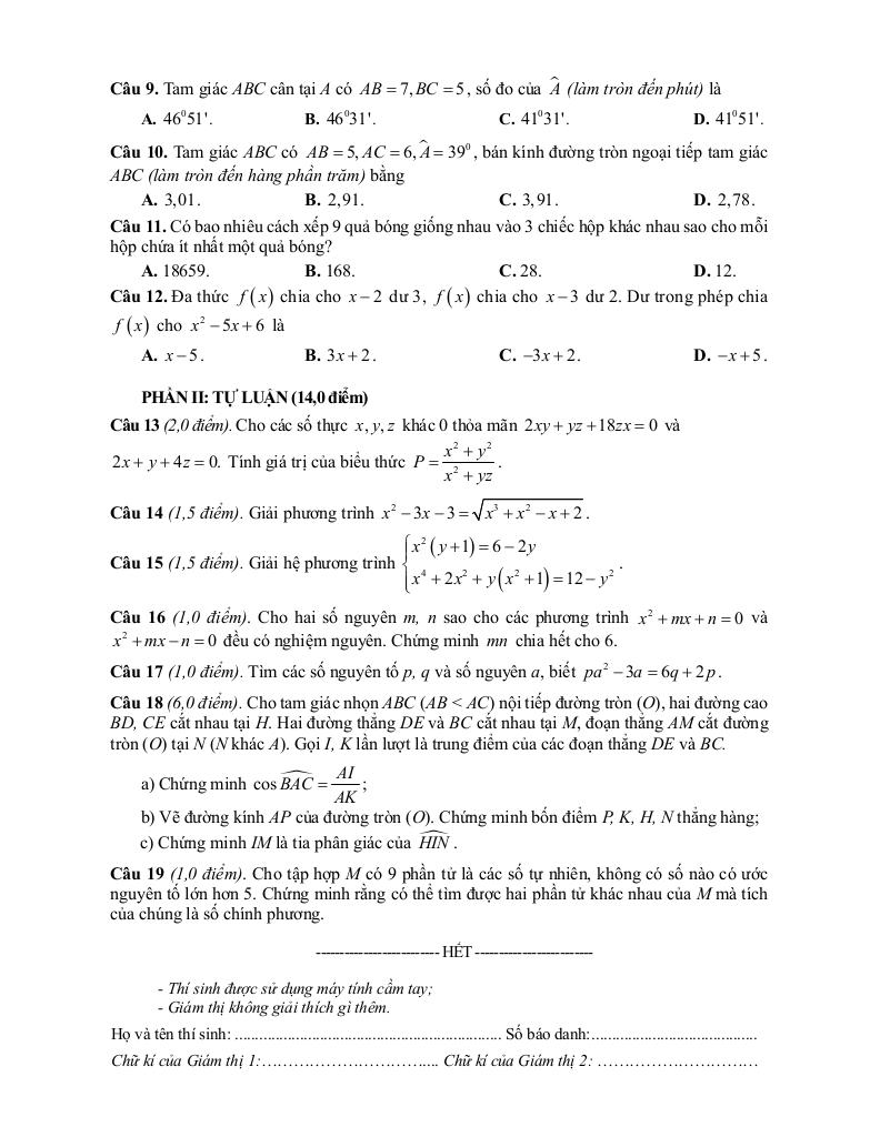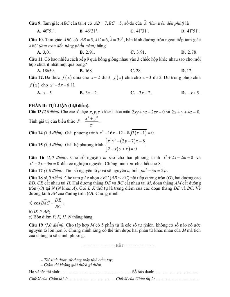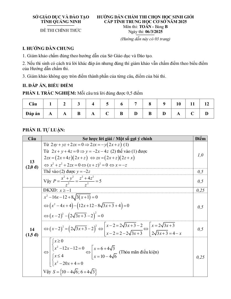 Toán học luôn là một môn học quan trọng, giúp học sinh phát triển tư duy logic và kỹ năng giải quyết vấn đề. Để hỗ trợ các bạn học sinh và giáo viên trong việc học tập và giảng dạy, bài viết này sẽ cung cấp lời giải chi tiết và đáp án chính xác cho chủ đề đề chọn học sinh giỏi cấp tỉnh toán thcs năm 2025 sở gd&đt quảng ninh, giúp bạn hiểu sâu và tự tin hơn khi làm bài tập.