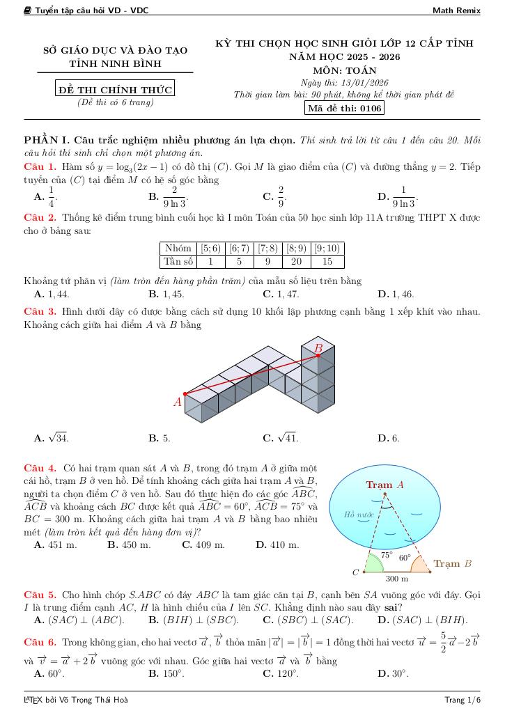 Trích dẫn Đề chọn học sinh giỏi tỉnh Toán 12 năm 2025 – 2026 sở GD&ĐT Ninh Bình: