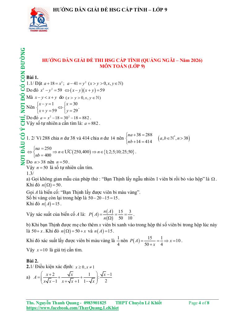 Toán học luôn là một môn học quan trọng, giúp học sinh phát triển tư duy logic và kỹ năng giải quyết vấn đề. Để hỗ trợ các bạn học sinh và giáo viên trong việc học tập và giảng dạy, bài viết này sẽ cung cấp lời giải chi tiết và đáp án chính xác cho chủ đề đề chọn học sinh giỏi tỉnh toán 9 năm 2025 – 2026 sở gd&đt quảng ngãi, giúp bạn hiểu sâu và tự tin hơn khi làm bài tập.