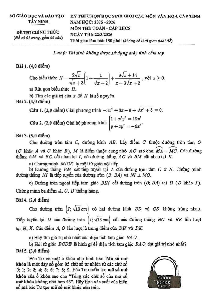 Trích dẫn Đề chọn học sinh giỏi tỉnh Toán THCS năm 2025 – 2026 sở GD&ĐT Tây Ninh: