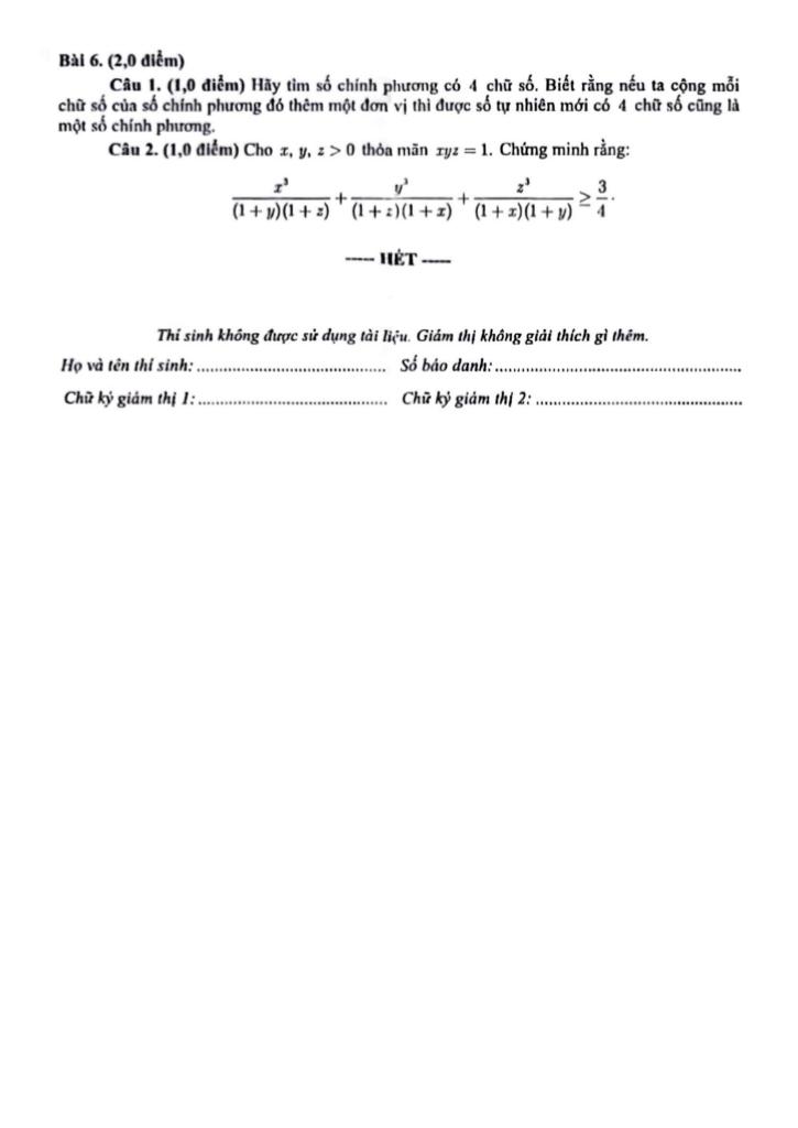 + Hãy tìm số chính phương có 4 chữ số. Biết rằng nếu ta cộng mỗi chữ số của số chính phương đó thêm một đơn vị thì được số tự nhiên mới có 4 chữ số cũng là một số chính phương.