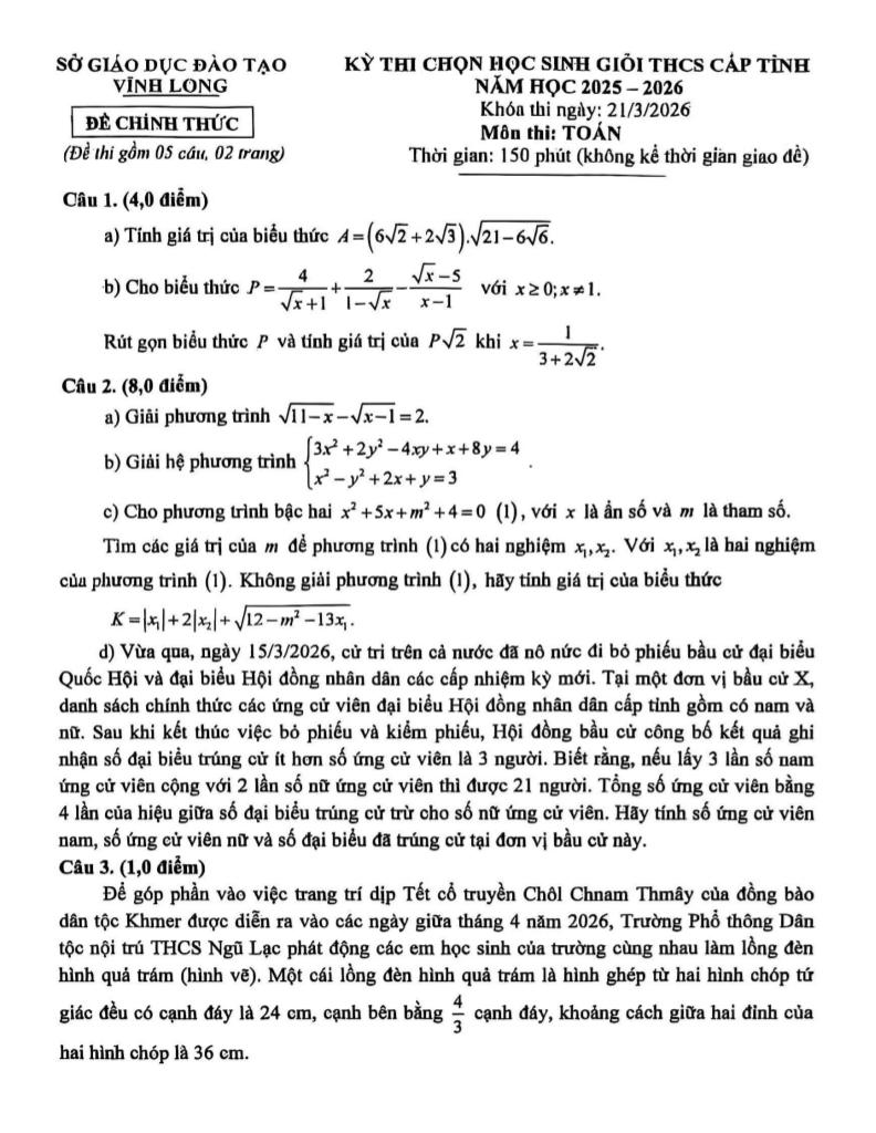 Giải Toán đề chọn học sinh giỏi tỉnh toán thcs năm 2025 – 2026 sở gd&đt vĩnh long với Đáp Án Mới Nhất