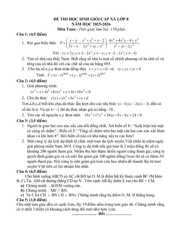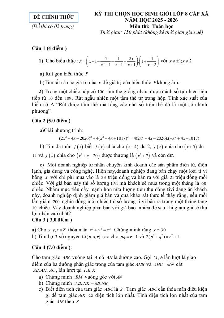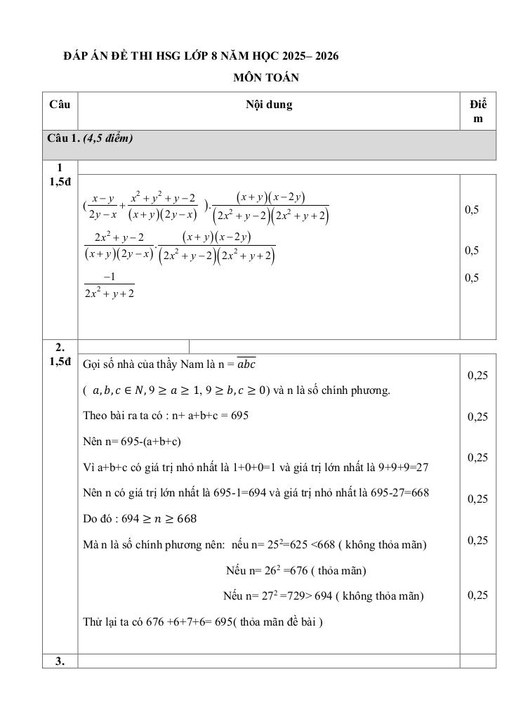 Toán học luôn là một môn học quan trọng, giúp học sinh phát triển tư duy logic và kỹ năng giải quyết vấn đề. Để hỗ trợ các bạn học sinh và giáo viên trong việc học tập và giảng dạy, bài viết này sẽ cung cấp lời giải chi tiết và đáp án chính xác cho chủ đề đề chọn học sinh giỏi toán 8 năm 2025 – 2026 cụm các trường thcs – nghệ an, giúp bạn hiểu sâu và tự tin hơn khi làm bài tập.