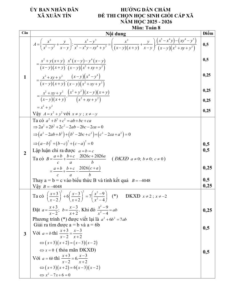 Giải Toán đề chọn học sinh giỏi toán 8 năm 2025 – 2026 xã xuân tín – thanh hóa với Đáp Án Mới Nhất