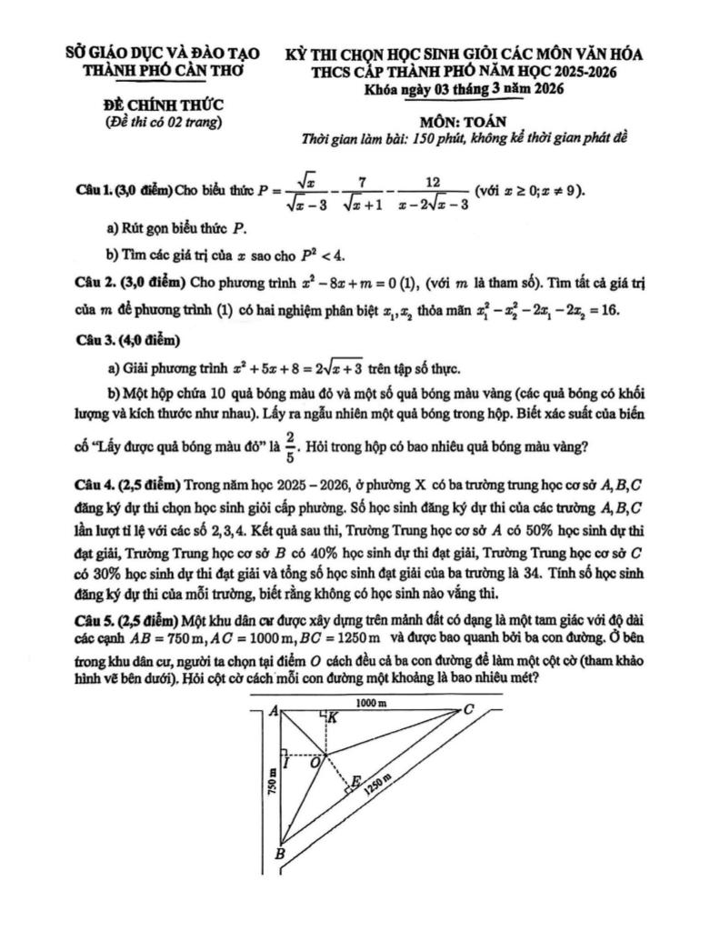 Giải Toán đề chọn học sinh giỏi toán thcs năm 2025 – 2026 sở gd&đt cần thơ với Đáp Án Mới Nhất