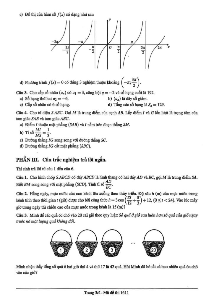giaitoan.edu.vn giới thiệu đến quý thầy, cô giáo và các em học sinh đề kiểm tra cuối học kì 1 môn Toán 11 năm học 2025 – 2026 trường THPT Marie Curie, thành phố Hồ Chí Minh. Đề thi gồm 12 câu trắc nghiệm nhiều phương án lựa chọn (3,0 điểm) + 04 câu trắc nghiệm đúng sai (4,0 điểm) + 06 câu trắc nghiệm trả lời ngắn (3,0 điểm), thời gian làm bài 90 phút.