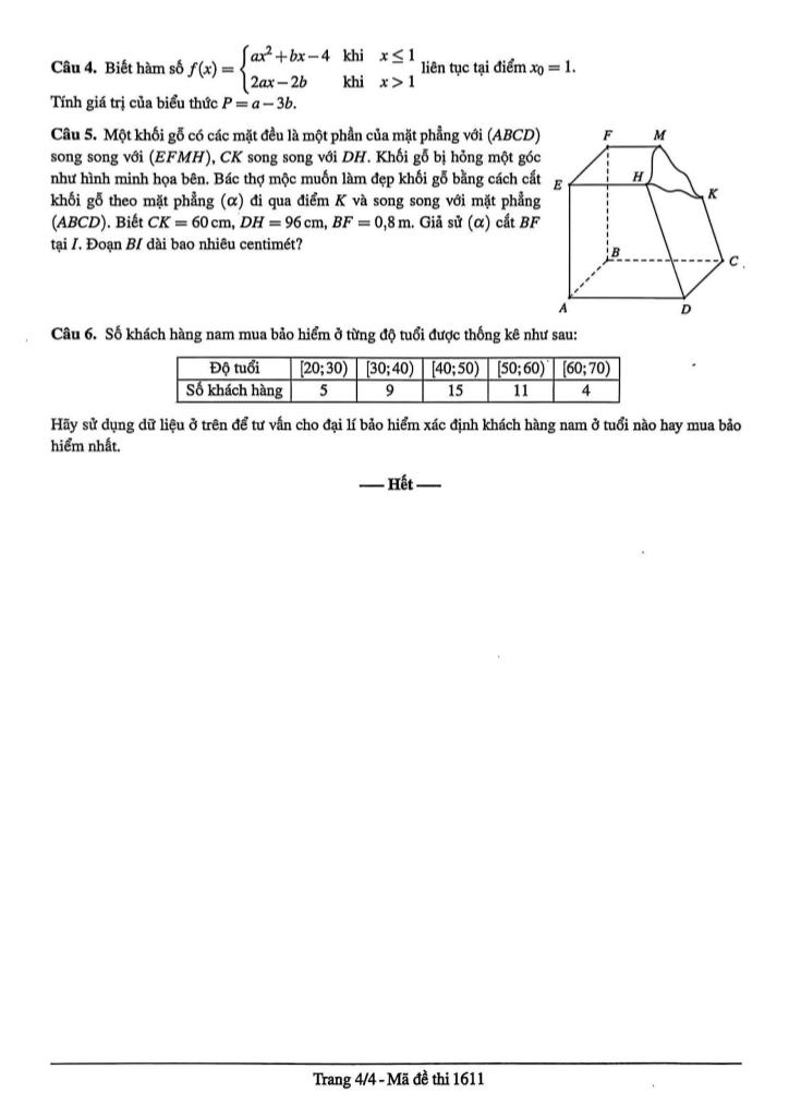 + Số khách hàng nam mua bảo hiểm ở từng độ tuổi được thống kê như sau: Độ tuổi: [20;30) [30;40) [40;50) [50;60) [60; 70). Số khách hàng: 5 9 15 11 4. Hãy sử dụng dữ liệu ở trên để tư vấn cho đại lí bảo hiểm xác định khách hàng nam ở tuổi nào hay mua bảo hiểm nhất.