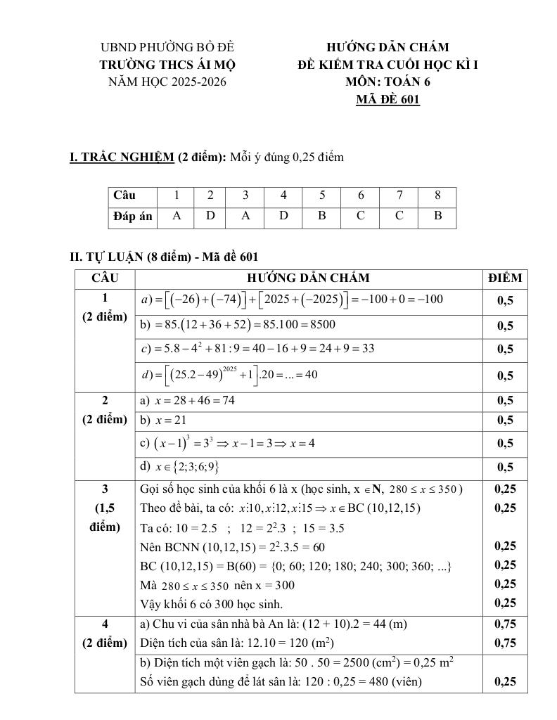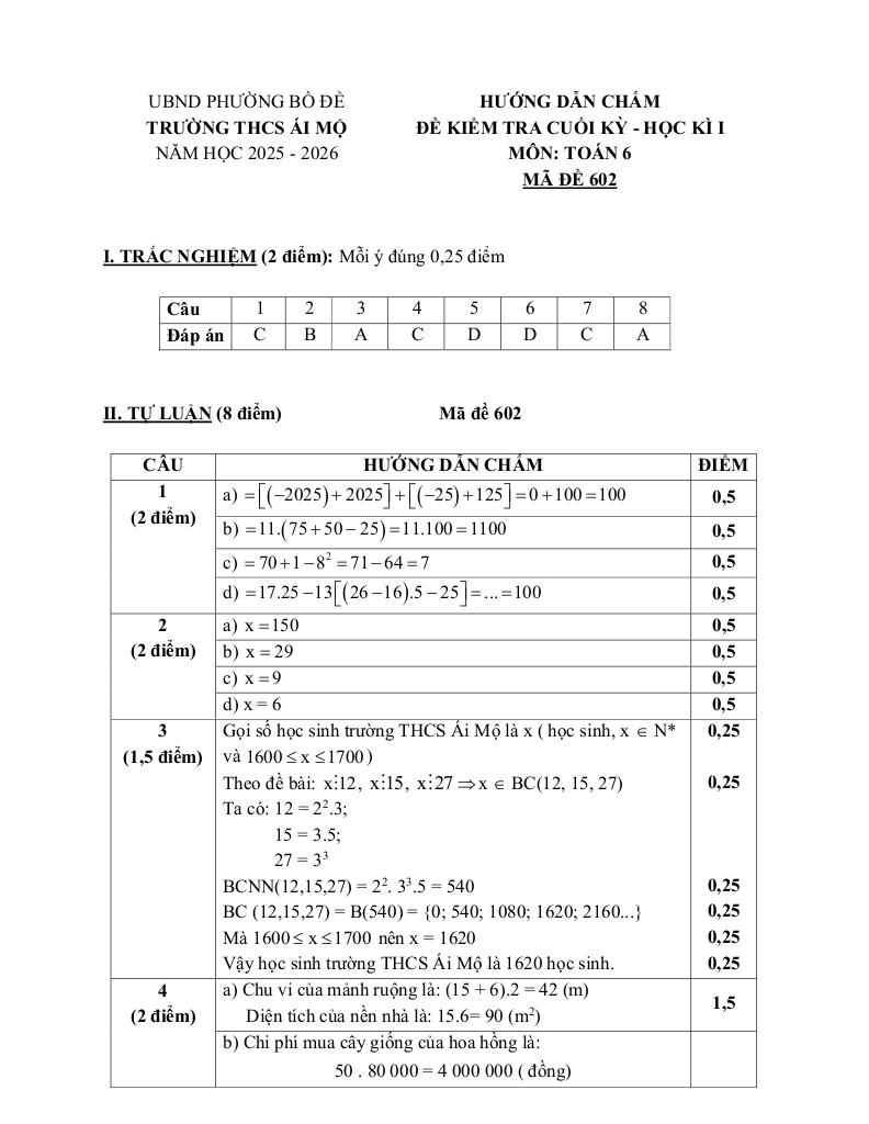 Giải Toán đề cuối học kì 1 toán 6 năm 2025 – 2026 trường thcs ái mộ – hà nội với Đáp Án Mới Nhất