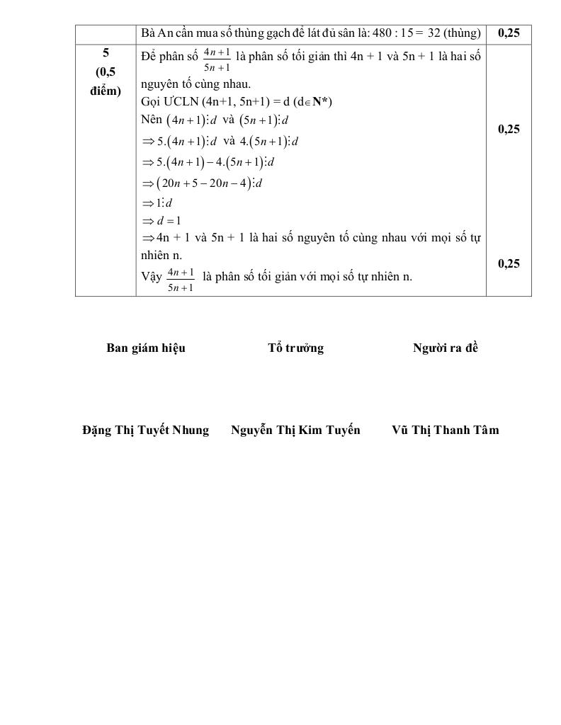 + Chứng tỏ rằng với mọi số tự nhiên n thì phân số (4n + 1)/(5n + 1) là phân số tối giản.
