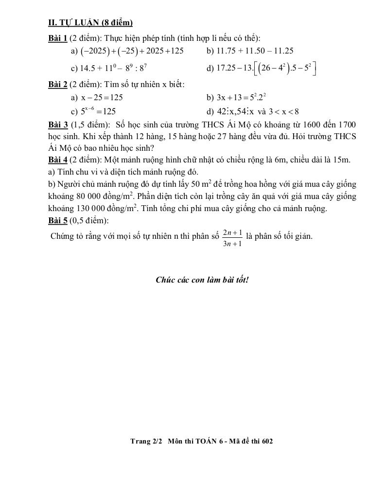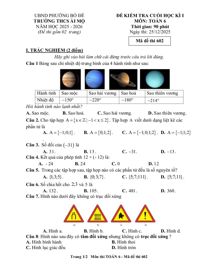 Toán học luôn là một môn học quan trọng, giúp học sinh phát triển tư duy logic và kỹ năng giải quyết vấn đề. Để hỗ trợ các bạn học sinh và giáo viên trong việc học tập và giảng dạy, bài viết này sẽ cung cấp lời giải chi tiết và đáp án chính xác cho chủ đề đề cuối học kì 1 toán 6 năm 2025 – 2026 trường thcs ái mộ – hà nội, giúp bạn hiểu sâu và tự tin hơn khi làm bài tập.