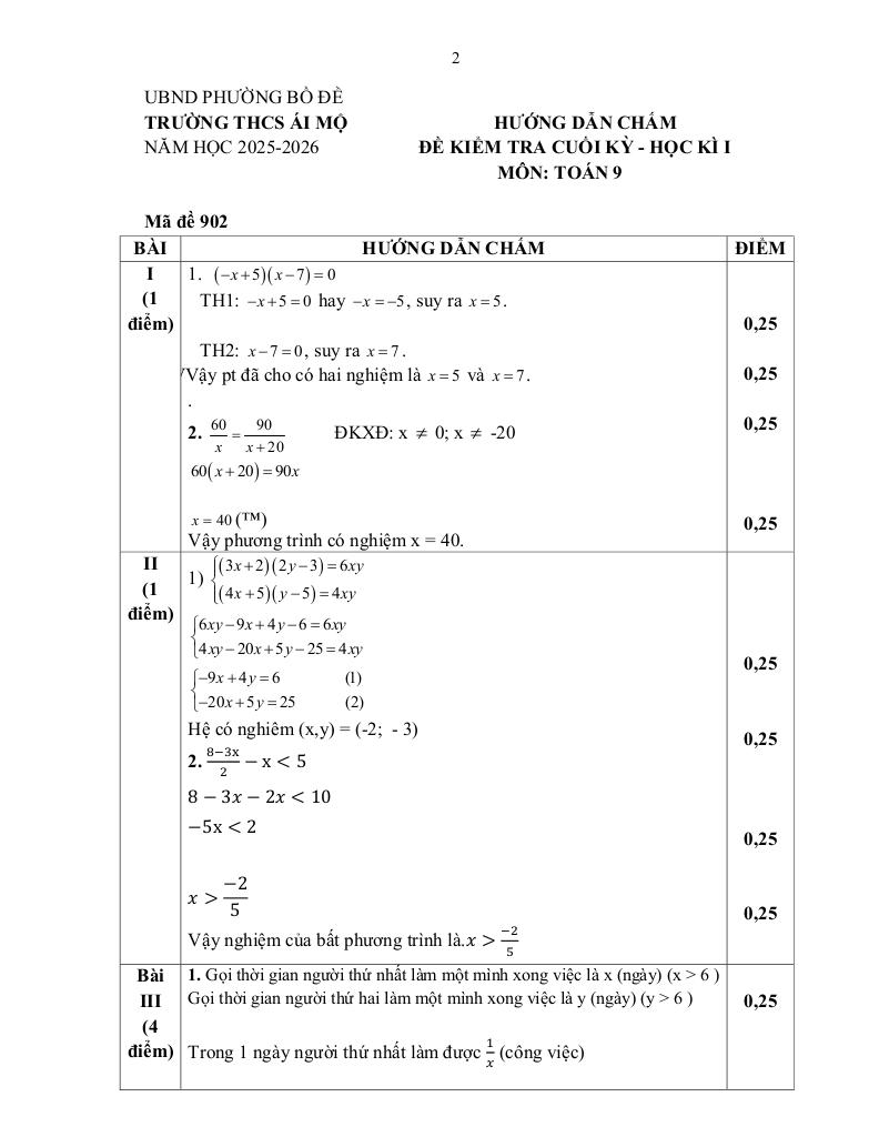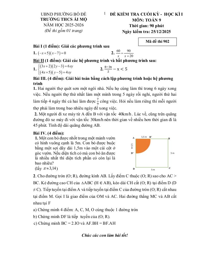 Giải Toán đề cuối học kì 1 toán 9 năm 2025 – 2026 trường thcs ái mộ – hà nội với Đáp Án Mới Nhất