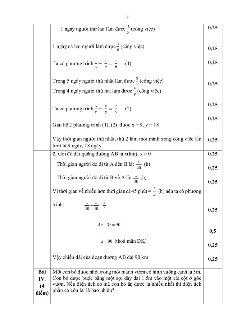 + Giải bài toán bằng cách lập phương trình hoặc hệ phương trình: Hai người thợ quét sơn một ngôi nhà. Nếu họ cùng làm thì trong 6 ngày xong việc. Nếu người thợ thứ nhất làm một mình trong 5 ngày rồi nghỉ, người thứ hai làm tiếp 4 ngày thì cả hai làm được 7/9 công việc. Hỏi nếu làm riêng thì mỗi người thợ phải làm trong bao nhiêu ngày để xong việc.
