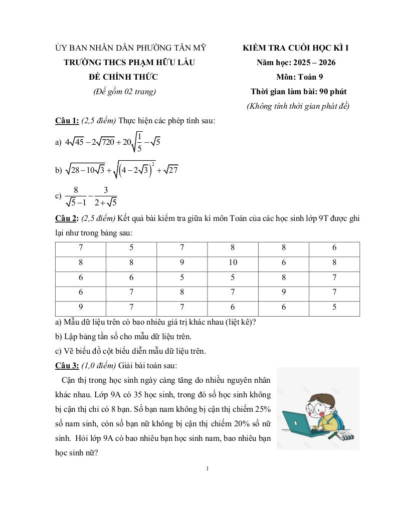 Trích dẫn Đề cuối học kì 1 Toán 9 năm 2025 – 2026 trường THCS Phạm Hữu Lầu – TP HCM: