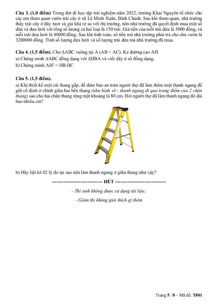 Giải Toán đề cuối học kì 2 toán 8 năm 2025 – 2026 trường khai nguyên – tp hcm với Đáp Án Mới Nhất