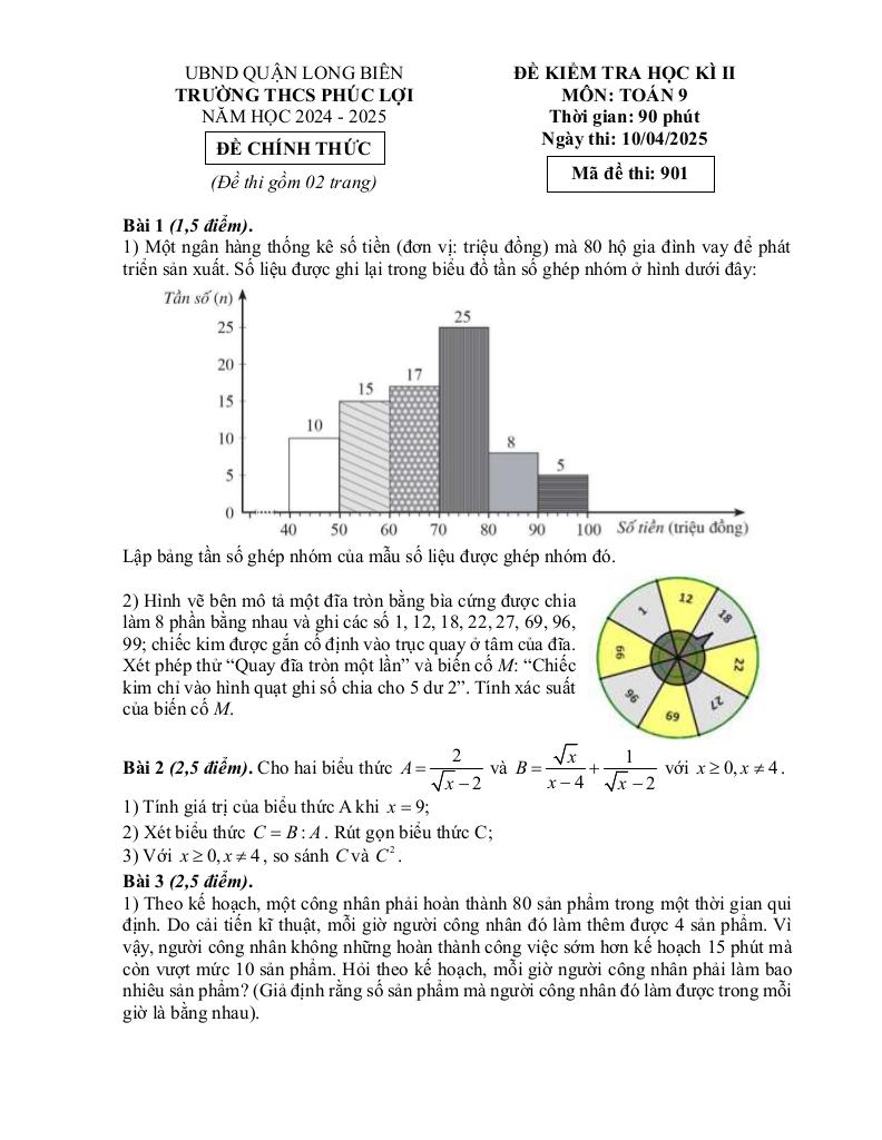 Trích dẫn Đề cuối học kì 2 Toán 9 năm 2024 – 2025 trường THCS Phúc Lợi – Hà Nội:
